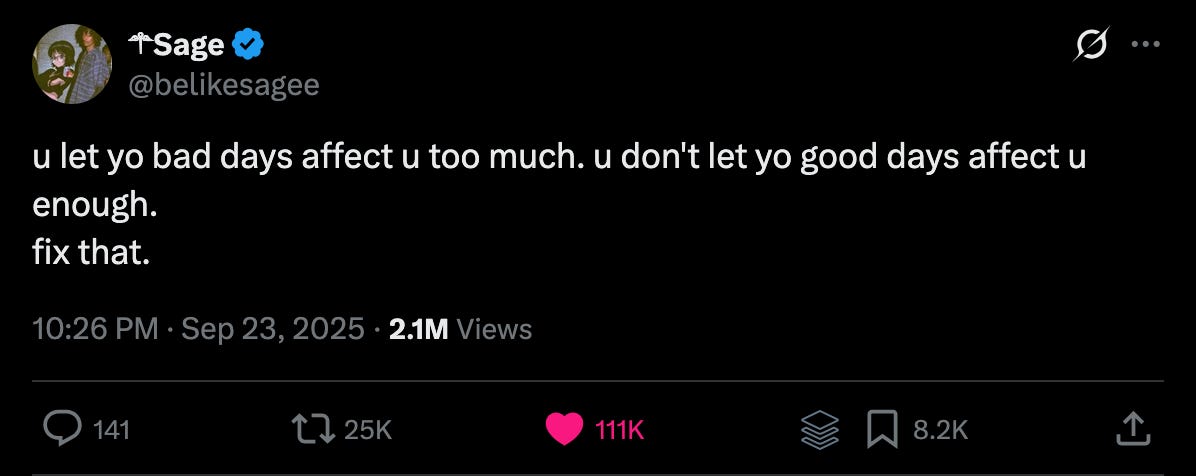 ◘ Maybe we actually learn a ton from the bad days, even if we don’t realize it, while the good days just kind of help us grow in the background. Instead of fixating on setbacks, like that frustrating traffic jam, what if we tried celebrating the little wins? Think about giving yourself a nod for even a super smooth commute.